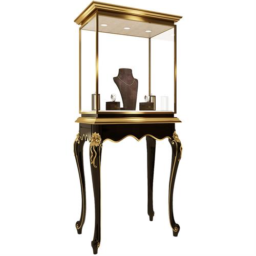 片尺寸价格说明定做服务。此款展柜采用欧式风格设计,柜体部分采用带桌脚的欧式高柜和不锈钢铜金属线分隔,使人感觉整洁,简洁,同时采用拉丝黄铜进行细化磨边,体现出精巧之处。