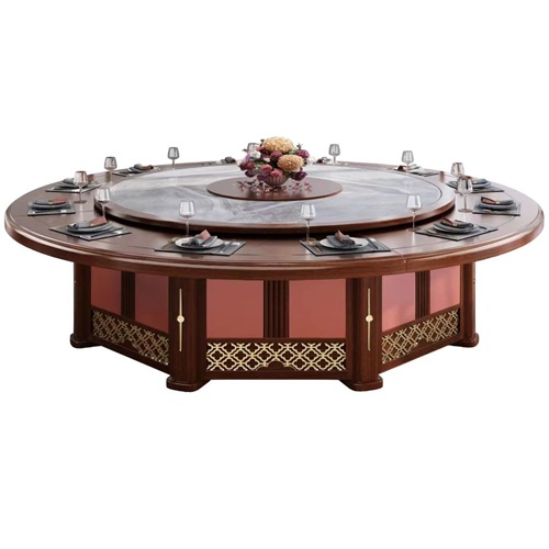 酒店高级新中式25人电动餐桌酒店实木电动豪华餐桌图