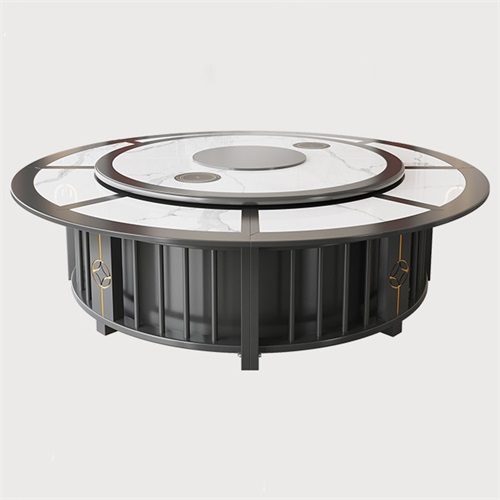 (9)导瓷:岩板电动餐桌具有良好的导瓷特点,因此,可以作为隐藏式火锅桌使用,避免表面开孔,桌面不完整的缺陷。