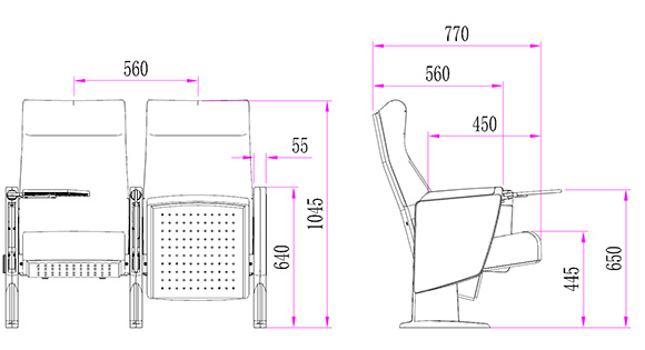 2.座椅基本中心距为560±5mm,座包打开侧深760±5mm,基本椅高为1025±5mm,最小排距:950mm。