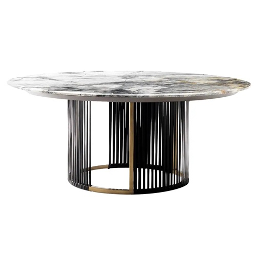 餐厅家具厂家为您展示中餐厅饭店高档大理石时尚餐桌椅图片展示\价格说明\定做服务。这款中餐厅饭店高档大理石时尚餐桌椅,给餐厅带来精致感。它的结构是圆形轮廓的相互作用,餐桌台面采用隐形灰色大理石的看起来华丽。桌脚结构也是一个圆形,有一个带有缎面黄铜饰面的金属底座。圆形桌脚用皮革装饰条,深棕色也垂直延伸,效果动态和引人注目的。